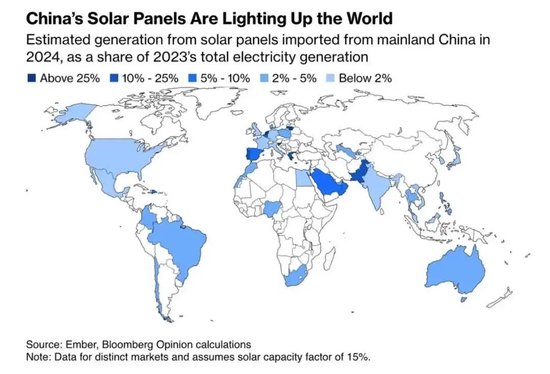 这一切正在发生。这里所引用的数据来自彭博社,而非中国官方统计。这些数据清晰展现出全球能源体系的变革,正是得益于中国所提供的极低成本的太阳能产品。