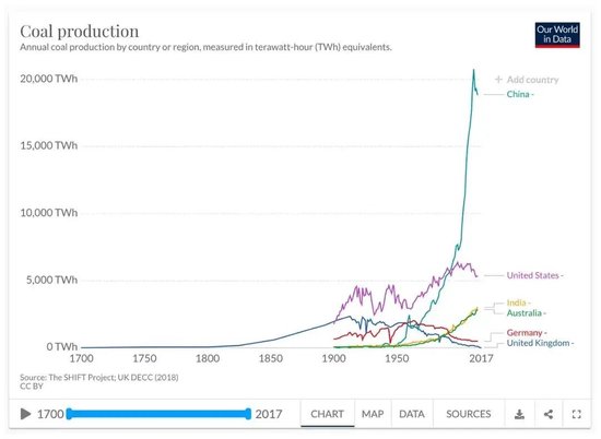 然而,自那以后,在我们所有人的生命时间里,中国发生了一场令人震惊的变化,连中国政府体系本身也措手不及。这一煤炭消费和产量的剧增在整个人类历史中前所未有。