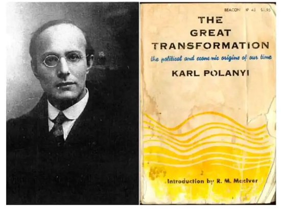 他描述了一个你们可能了解的阶段:从19世纪那个不受约束的经济体制——经济成为一种奇怪的、自主的存在。卡尔·马克思当然在异化理论和商品之谜等著作中谈到过这一点。作为一名人类学家兼历史学家的波兰尼,则像一个火星人般审视19世纪的世界,认为这些人简直疯狂,为什么允许经济如此自由运作?社会如何回应?它以社会保护主义回应,以贸易关税回应,通过限制农产品保护土地,以布雷顿森林体系取代金本位,进入凯恩斯主义管理时代。