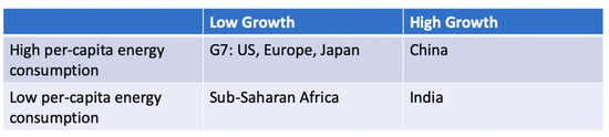我们现在面临的是四种不同的情形。第一种是高人均能源消费但低增长的世界,这也是最早提出气候问题的语境所在。